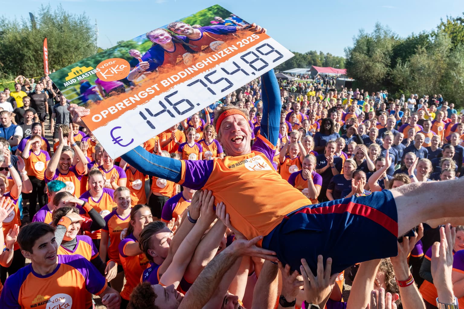 Maar liefst 328 sportievelingen rennen zich dit jaar de blubber tijdens Mud Masters voor KiKa in Biddinghuizen. Door de modder, over hoge muren en door het koude water voor maar één doel: zoveel mogelijk geld ophalen voor onderzoek naar kinderkanker. En met succes want er is een prachtig bedrag van €148.098 gehaald.