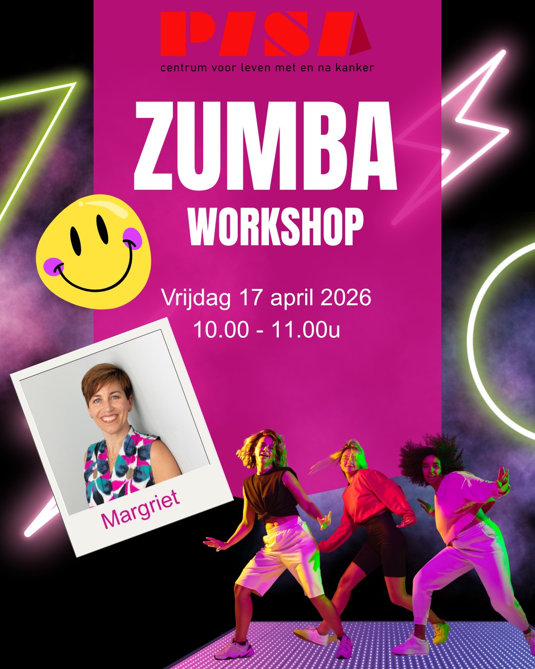 Met heel veel plezier kom ik op vrijdag 17 april 2026 bij PISA een Zumba-workshop geven!